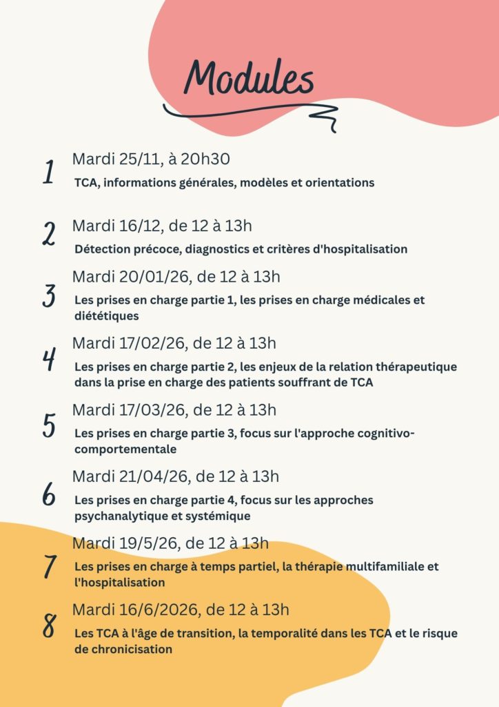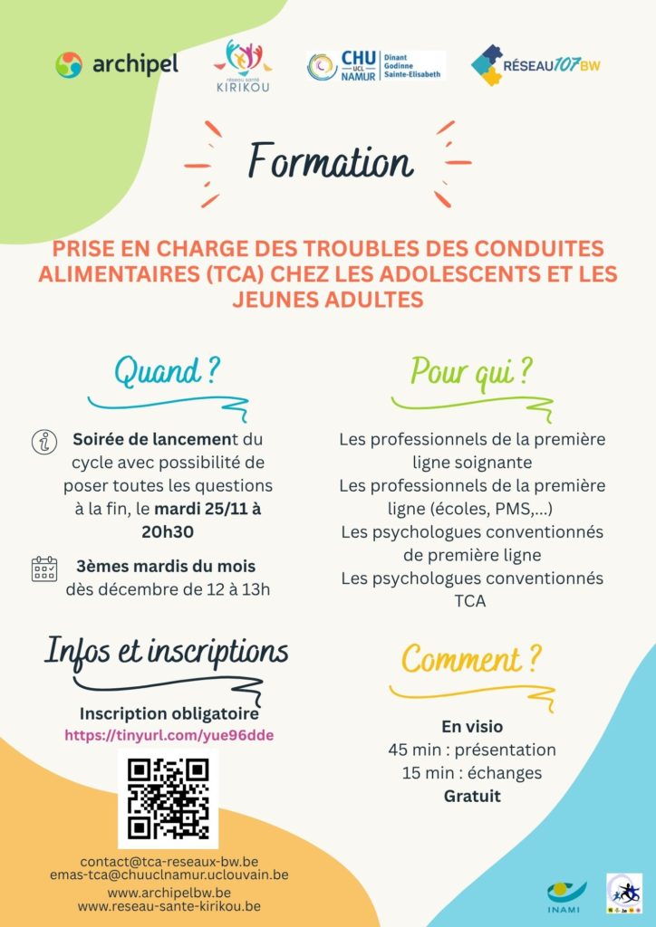 Les équipes EMAS (Equipes Multidisciplinaires Ambulatoires de Soutien) BW & Namur proposent pour cette année 2025-2026 un cycle d’introduction à la prise en charge des troubles des conduites alimentaires (TCA) chez les adolescents et les jeunes adultes.